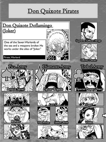 One Piece Donquixote Doflamingo Badge One Piece Ultimate Crew Vol 2 Dodeka Can Badge Brujula Myfigurecollection Net As the captain of the donquixote pirates and a powerful former member of the shichibukai, donquixote doflamingo had complete authority over his crew.